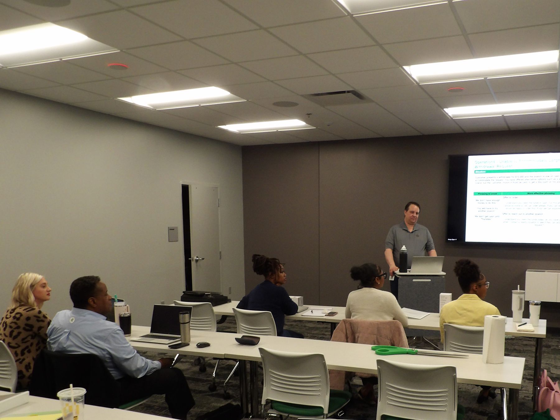 Lobby with teller lines, six offices, community/training room, conference room, breakroom